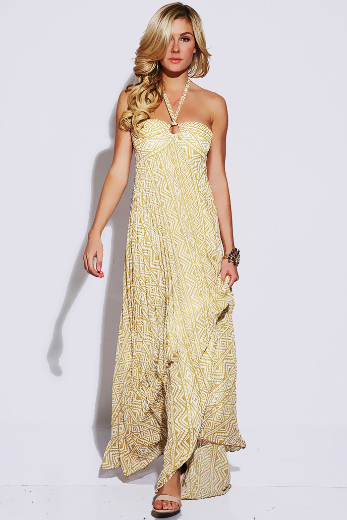We our obsessed with our #tribal #goddess maxi!! It's absolutely gorgeous on and flows beautifully! Tribal print pleated chiffon ring halter maxi dress.